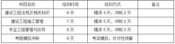 (二)培訓。中豐建科將為廣大學員提供更權(quán)威的的老師加以培訓,讓更多的學員都能夠通過二建,邁向一建。具體課時安排如下: