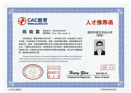 人力資源和社會保障部中國職工教育和職業(yè)培訓協(xié)會頒發(fā)全國通用的“建筑環(huán)境藝術設計師”《專業(yè)能力證書》。