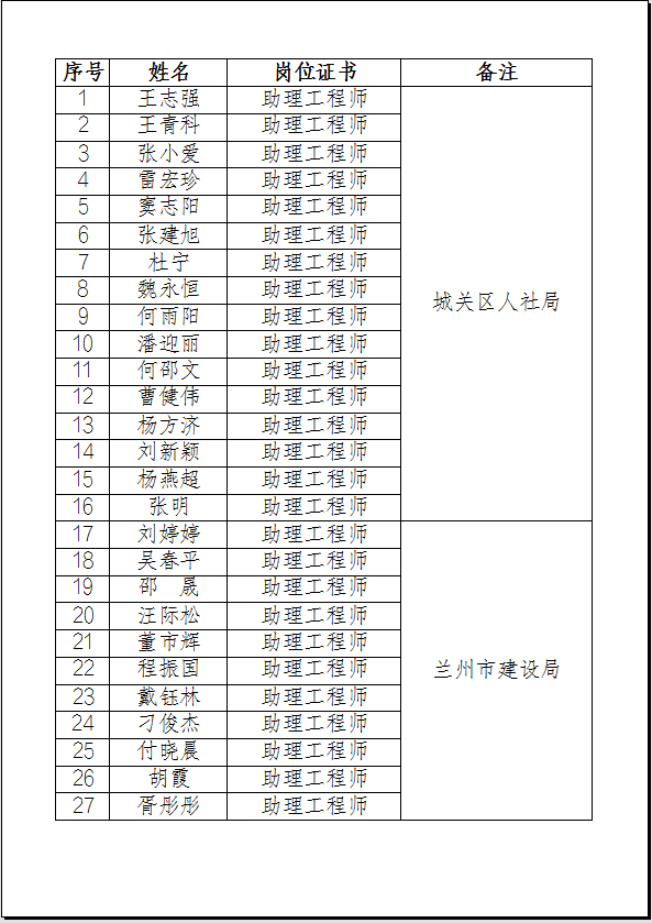 根據(jù)蘭州市職稱改革領(lǐng)導(dǎo)小組辦公室等管理規(guī)定,蘭州市建設(shè)工程專業(yè)中級(jí)職稱評(píng)審委員會(huì)評(píng)審,蘭州市住房和城鄉(xiāng)建設(shè)局發(fā)文,甘肅省人力資源服務(wù)有限公司報(bào)送。凡通過(guò)評(píng)審合格者,獲得初級(jí)助理工程師職業(yè)資格證。