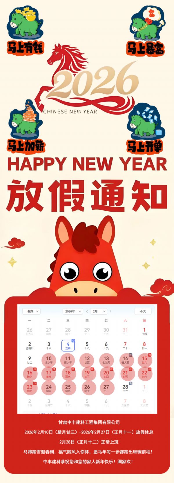 關(guān)于2026年中豐建科(甘肅)集團(tuán)春節(jié)放假的通知